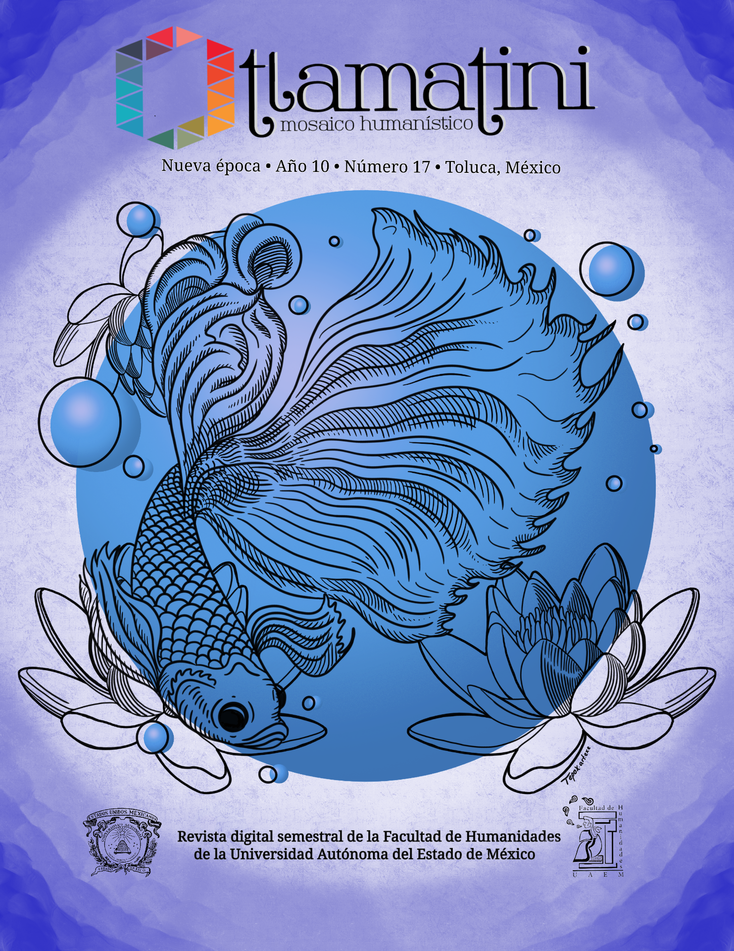 Colaboración con la revista Tlamatini: Mosaico Humanístico, publicación de la Facultad de Humanidades de la UAEMex. He participado como ilustrador, creando portadas y acompañando artículos con imágenes que dialogan con los temas filosóficos, históricos y culturales abordados en cada número. Mi trabajo busca expandir visualmente los contenidos académicos a través de una estética detallada y simbólica.