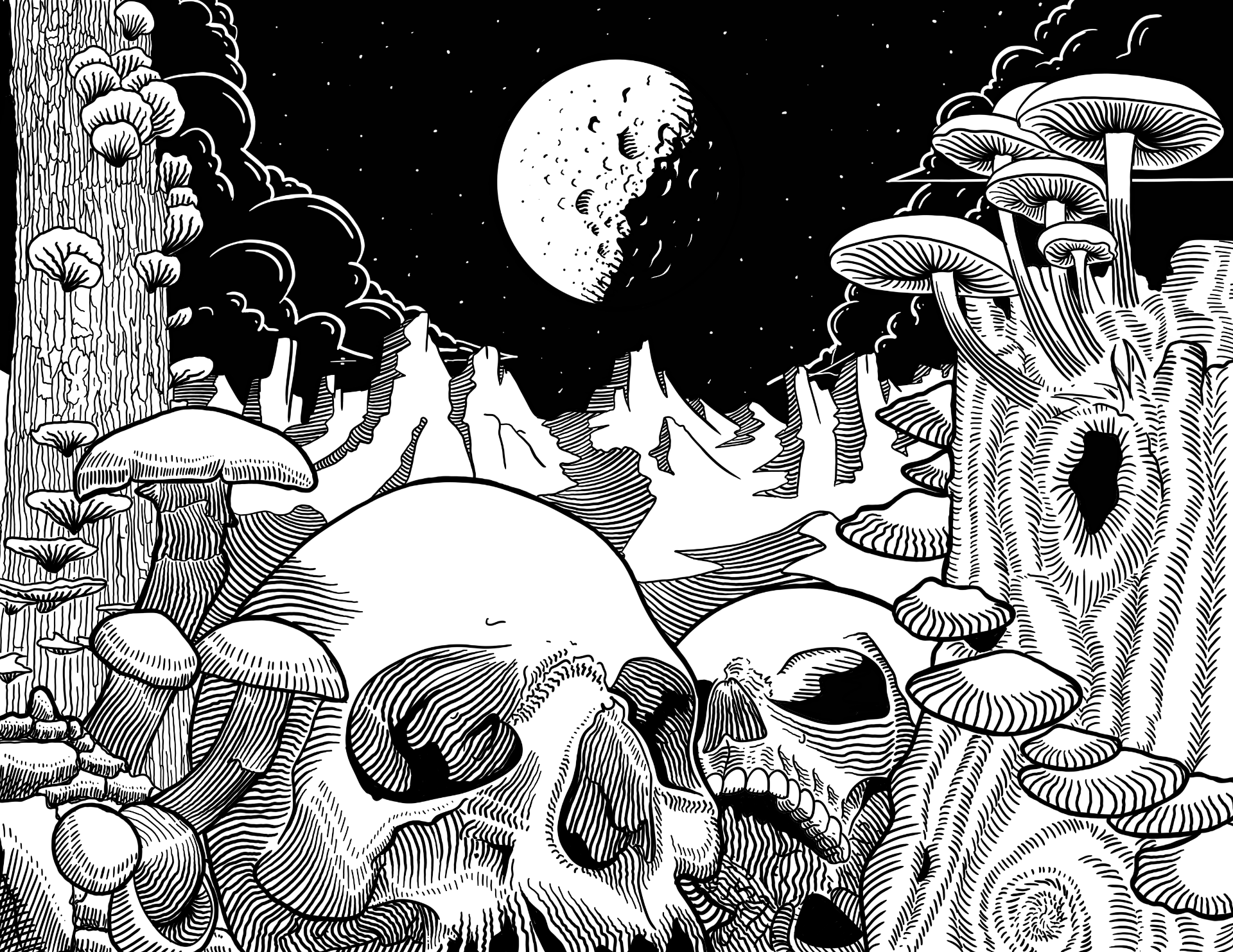 Mis ilustraciones tradicionales se centran en el uso de tinta y bolígrafo, explorando técnicas de degradado, claro-oscuro y ashurado para crear profundidad y textura. A través del contraste y la precisión del trazo, busco dar vida y volumen a cada detalle, logrando piezas que combinan delicadeza y fuerza visual, con un enfoque en la expresión detallada y la atmósfera.